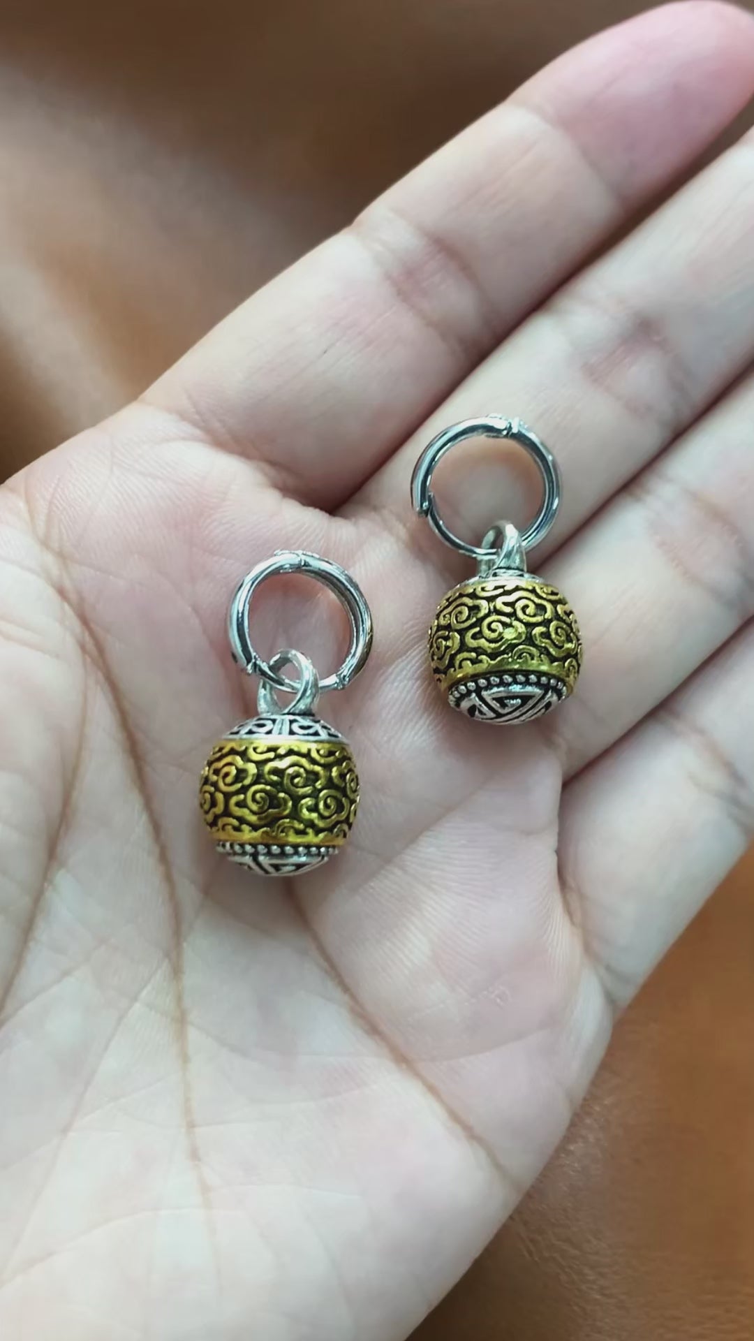 Crafted with high-quality silver, these earrings showcase a blend of golden and antique tones for a rich, layered look. The hand-carved balls are made with care and precision, ensuring lasting quality and artisanal texture. Lightweight and comfortable for all-day wear.