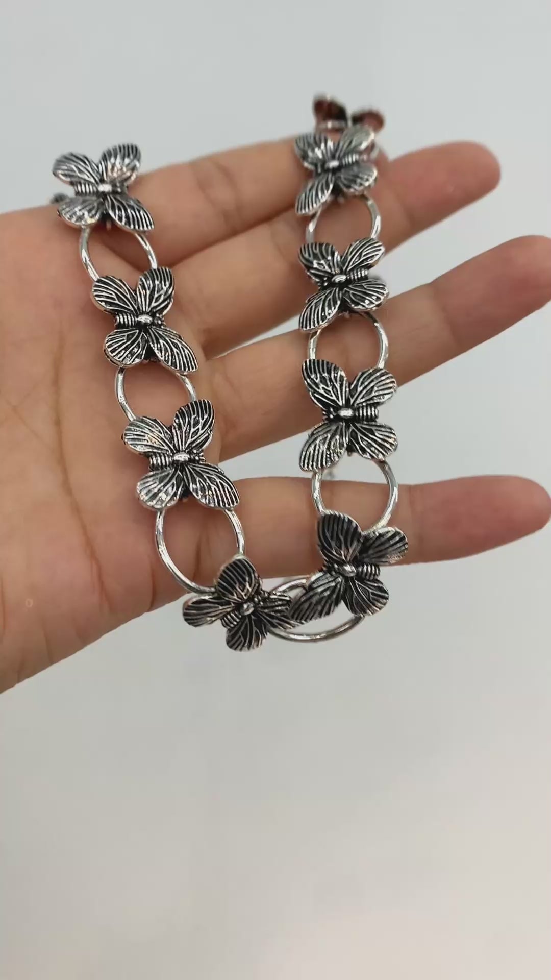 This vintage-inspired sterling silver necklace features a delicately cut butterfly pendant that symbolizes transformation and grace. Crafted with timeless elegance and a whimsical charm, it’s the perfect accessory for women who appreciate both classic beauty and unique design. The main chain measures approximately 12 inches and includes an extender for a total length of up to 14.5 inches, offering a close and flattering fit.