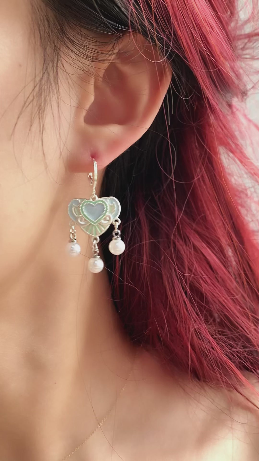 These heart pearl earrings feature a sweet, whimsical design that effortlessly blends cuteness and elegance. The heart and pearl combination brings a soft, romantic charm — perfect for adding sparkle to your everyday or special occasion look.