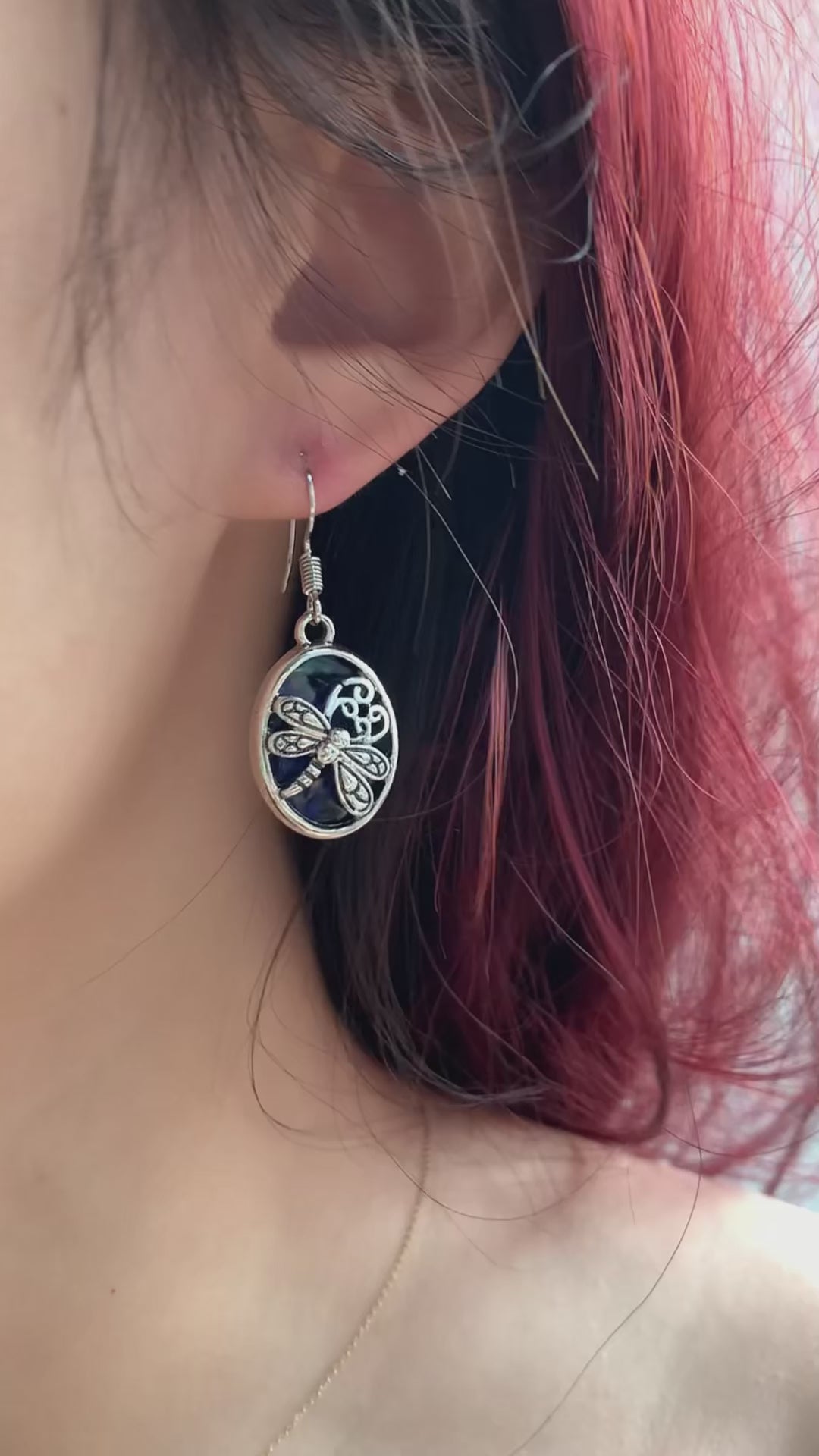 These handmade dragonfly earrings blend whimsical charm with vintage-inspired elegance. Featuring delicately crafted insect wings and iridescent shimmer, they capture the magic of nature in a lightweight and stylish form.