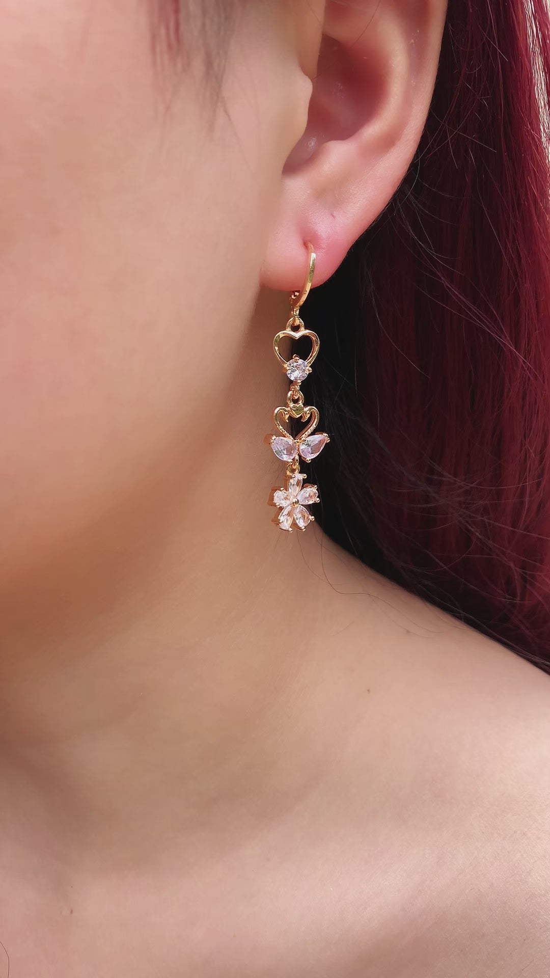 Add a touch of elegance and charm to your ensemble with these sparkling heart and flower dangle earrings. The unique combination of floral elements and romantic heart shapes makes these earrings a standout accessory for both everyday wear and special occasions.