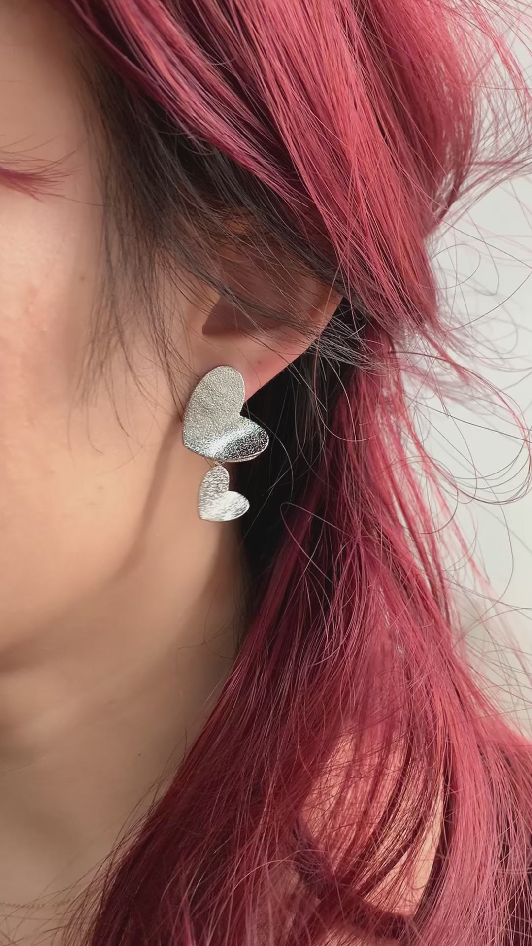 Our double heart earrings feature a delicate layered design, with two hearts stacked to create depth and movement. The shape subtly evokes butterfly wings, adding a sense of grace and lightness to every turn. These earrings are a symbol of love and transformation – perfect for everyday wear or meaningful gifts.
