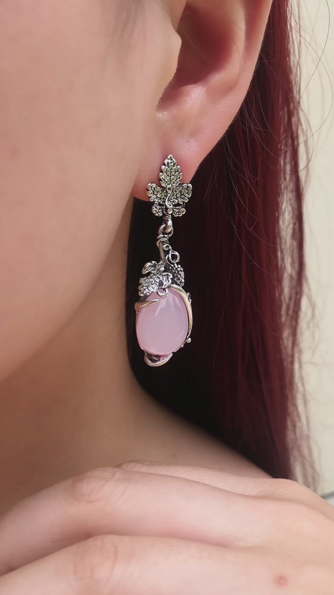 These rose quartz earrings combine the elegance of natural gemstones with intricate silver leaf details. Inspired by nature and vintage aesthetics, the gentle pink hue of the stones reflects beauty, love, and femininity — perfect for adding a soft romantic touch to your style.