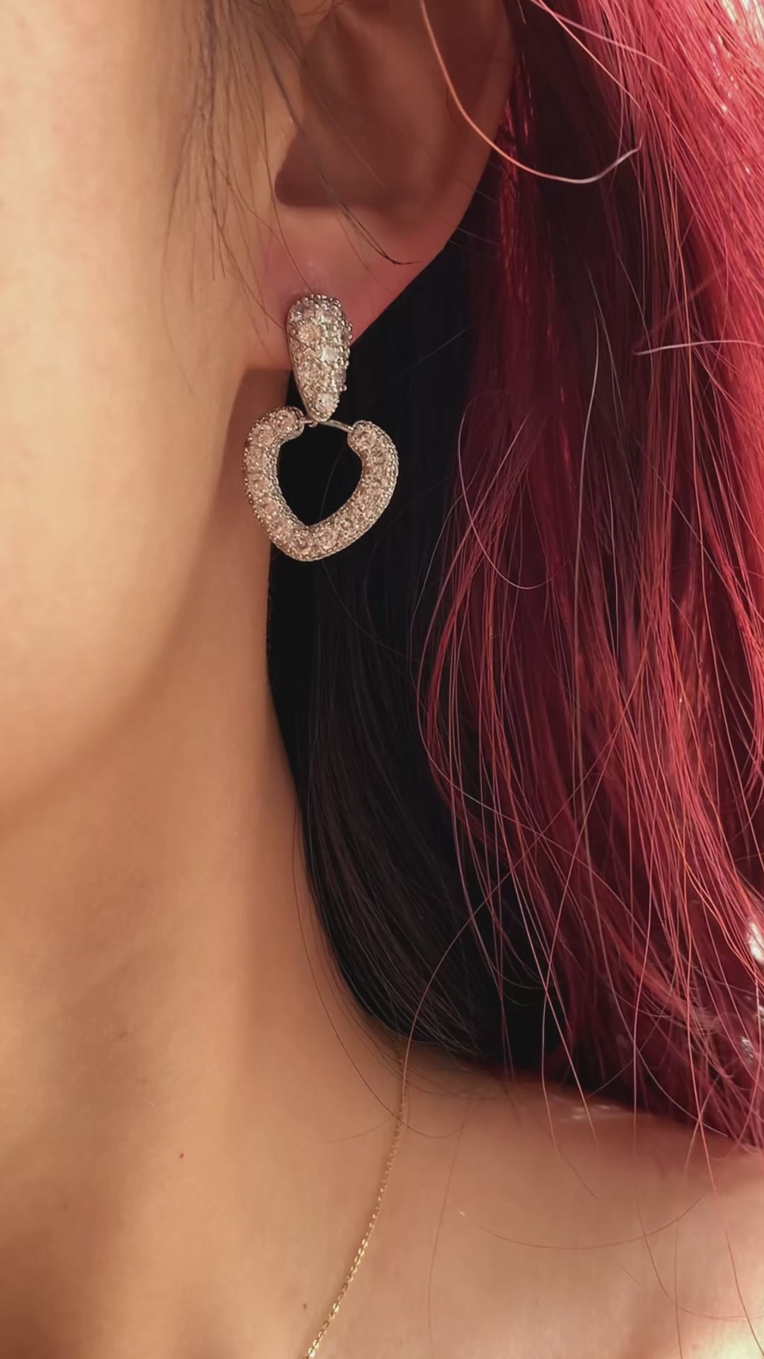 Add a romantic sparkle to your look with these Sparkling Crystal Heart Dangle Earrings. Featuring a delicate heart pendant design and shimmering rhinestones, these earrings bring both sweetness and elegance to your style—perfect for everyday wear or evening occasions.