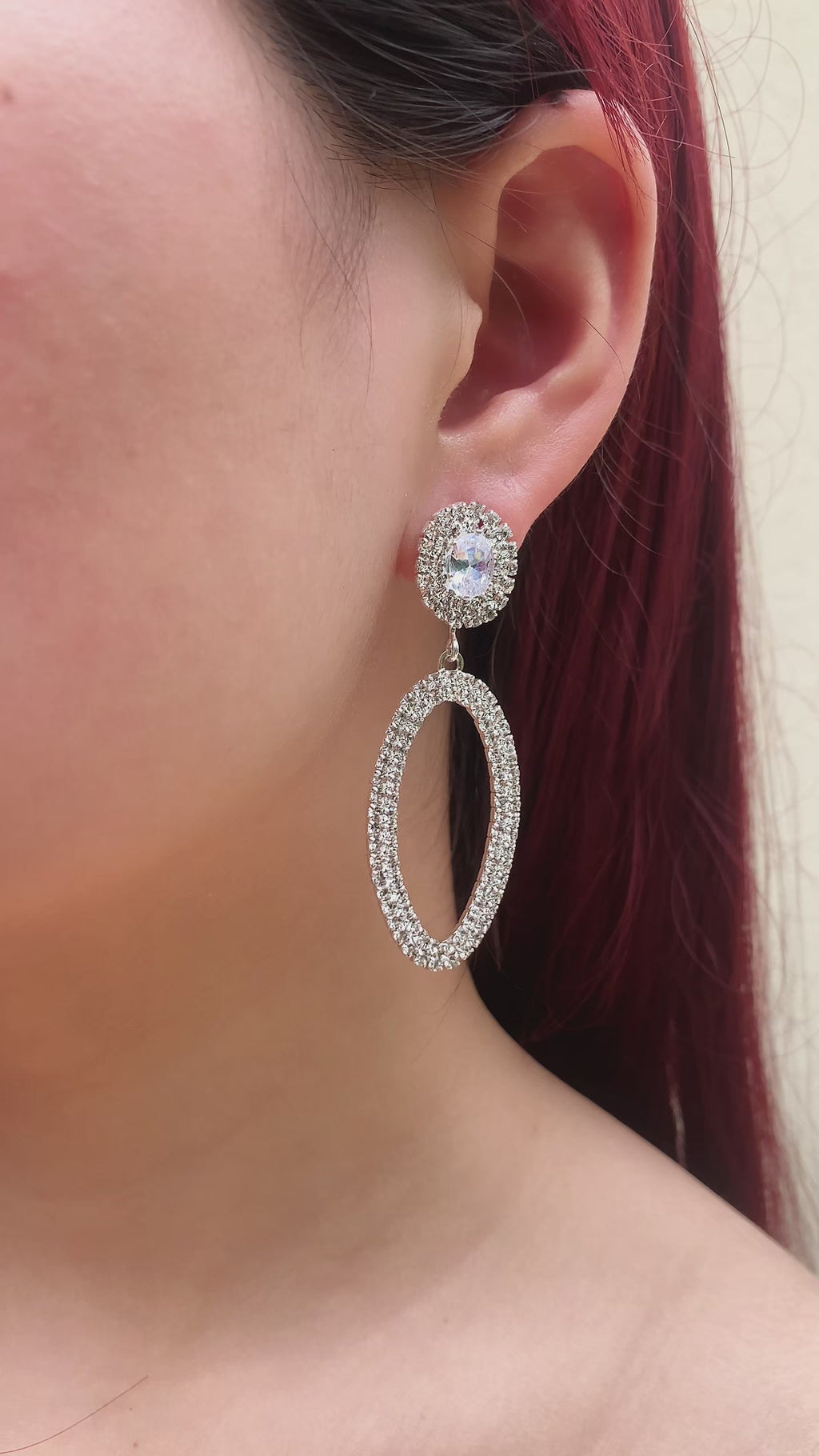 These stunning oval drop earrings are designed to make a statement. With dazzling cubic zirconia and an elegant silhouette, they add grace and glamour to any outfit – perfect for weddings, parties, or special moments.